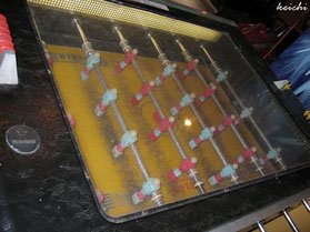 Игра, больше известная у нас в стране под названием «шашлык» (и носящая на Западе название «фуссбол»), предназначенная для двух-четырех игроков. Удары и пасы осуществлялись вращением рукояток стрежней, на которых были «насажены» фигурки футболистов (отсюда и название — «шашлык»). При этом фигурки футболистов на стержне меняли свой угол наклона, что позволяло наносить удары по шарику-мячу. Также стержни можно было перемещать вперед-назад, меняя горизонтальное расположение игроков. Поразив ворота соперника точным ударом, игрок получал очко.