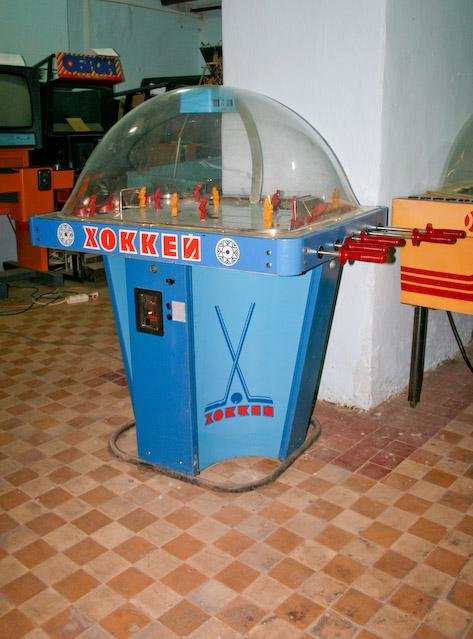 Игра, мало чем отличавшаяся от своей «домашней» версии, получить которую на день рождения мечтали много советские дети. Основными отличиями были габариты и наличие стеклянного колпака, накрывающего поле и предохраняющего шайбу от вылета за его пределы, а фигурки игроков — от любопытных детских рук.